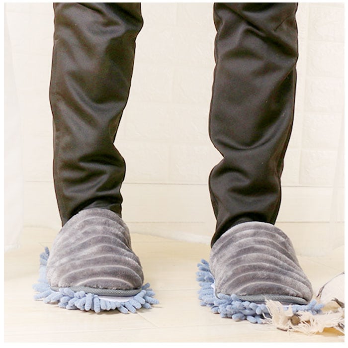 ・お掃除用モップと同じ、柔らかなマイクロファイバー繊維の“ふさ”が、小さなホコリや髪の毛も逃さずキャッチ!履いているだけで、隅々までパッとお掃除!