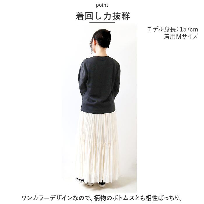 ・ワンカラーデザインなので、柄物のボトムスとも相性ばっちり。