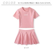 ・トップスは首周りが広すぎないラウンドネックに、肩や腕が動かしやすい半袖タイプ。