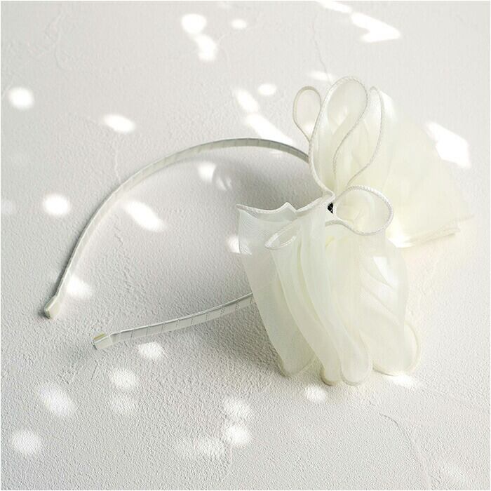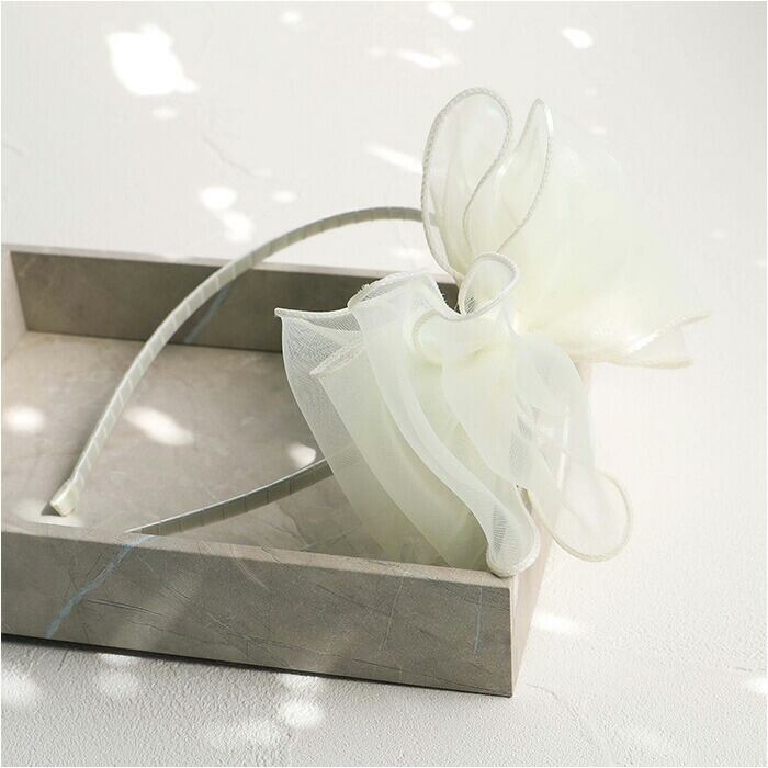 ・シフォンのような透け感のある生地で作られた、大きなリボンが印象的。透明感のあるデザイン♪