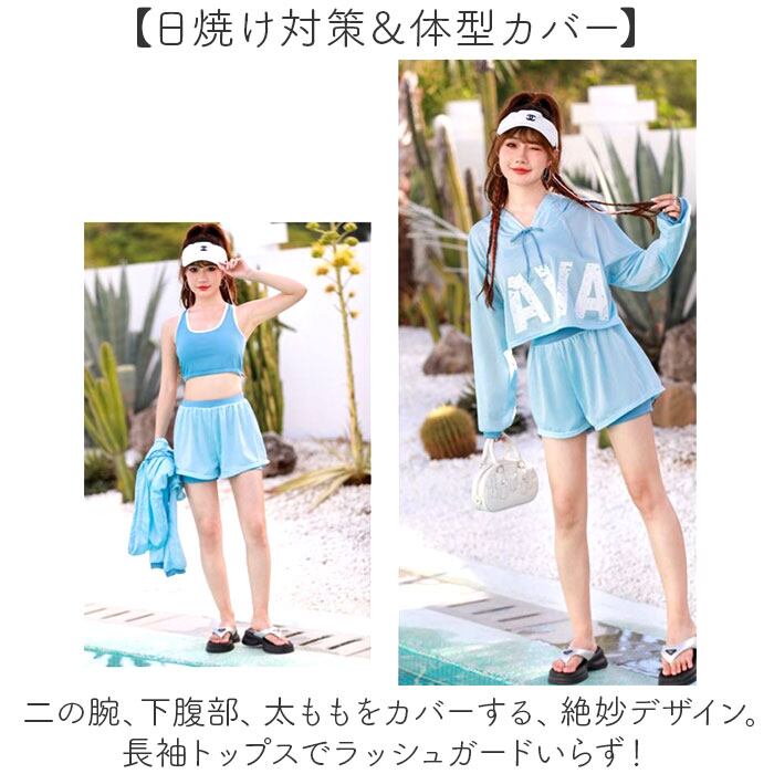 水着 レディース 3点セット 体型カバー 通販 タンキニ スイムウェア レディース水着 ラッシュガード ショートパンツ セットアップ セパレート セット 露出控え かわいい 可愛い キュート スポーツ 学生 女性用 大人 女性 ビーチバレー ビーチ 海