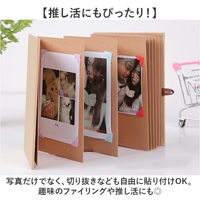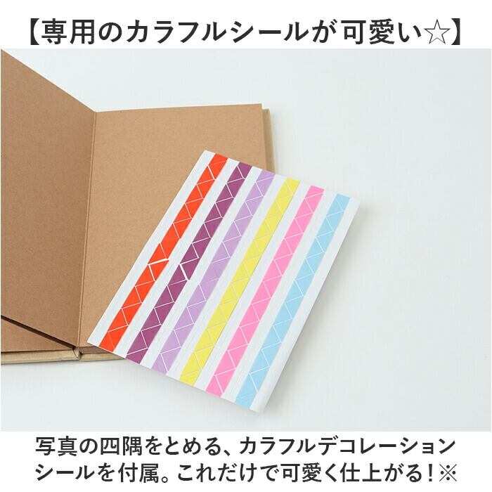 ・写真の四隅をとめる、カラフルデコレーションシールを付属。これだけで可愛く仕上がる!