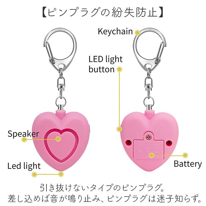 ・ピンプラグを引っ張ると、120dBのブザー音が鳴り響く◎夜道や人通りの少ない場所でも安心