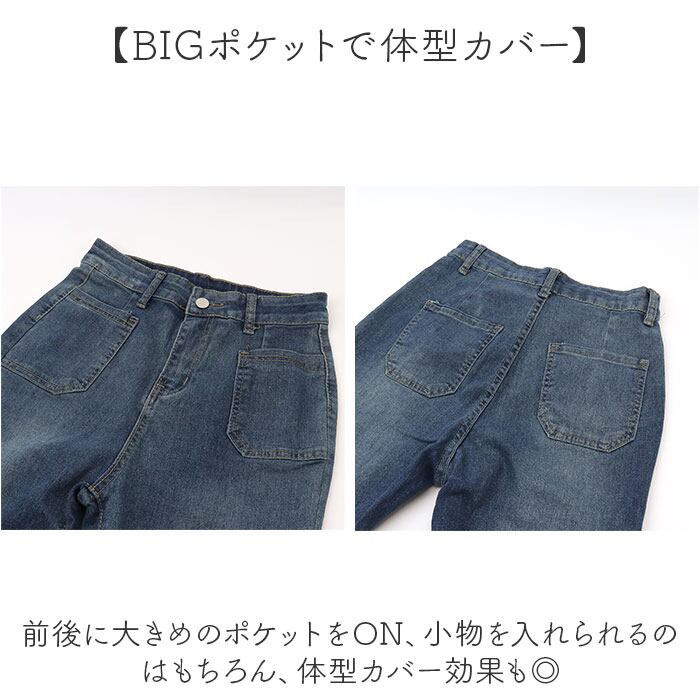 ・前後に大きめのポケットをON、小物を入れられるのはもちろん、体型カバー効果も◎