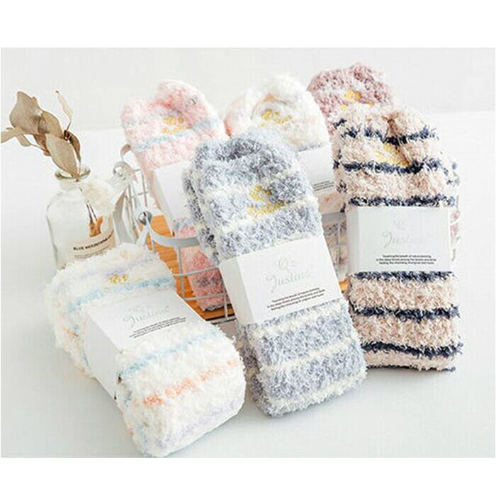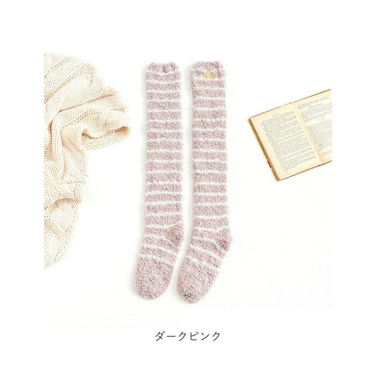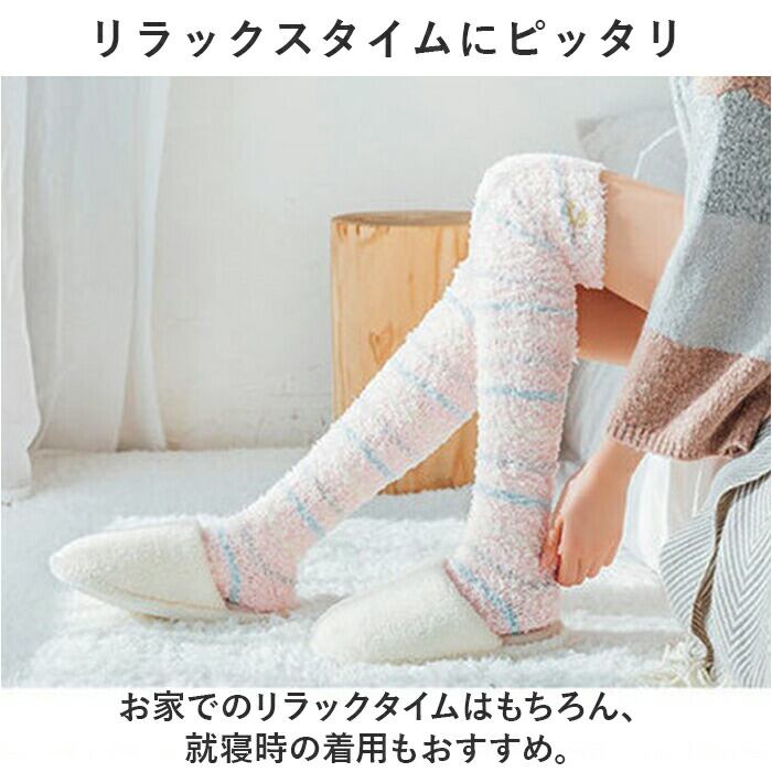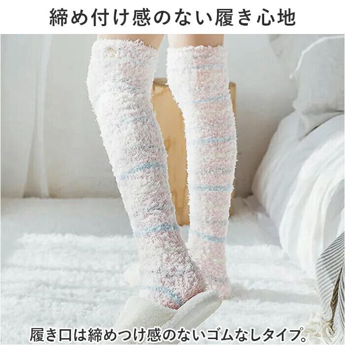 ルームソックス レディース ニーハイソックス 通販 ハイソックス 靴下 ソックス ロングソックス もこもこ ロング ふわふわ 暖かい あったか ロング丈 キュート かわいい ボーダー 贈り物 ギフト