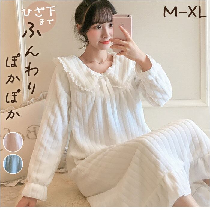 ルームウェア レディース 長袖 ロング丈 通販 ルームワンピース ネグリジェ ワンピース 部屋着 ロング ふんわり フランネル ふわふわ モコモコ 秋 冬 もこもこ 柔らか 無地 あったか 姫系
