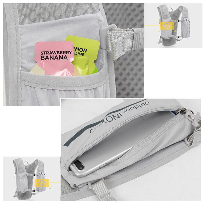 ・軽量な生地使いと、ベストのようなスタイリッシュなフォルムで、ドリンクやスマートフォンなどの必須アイテムを競技に影響を与えずに持ち運ぶことが可能!