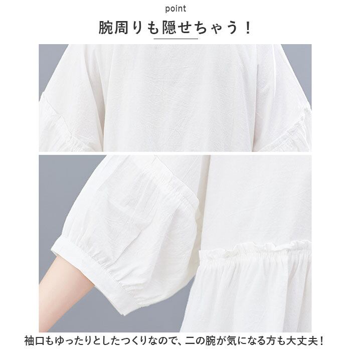 ・袖口もゆったりとしたつくりなので、二の腕が気になる方も大丈夫!