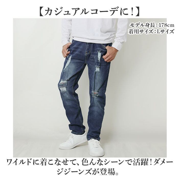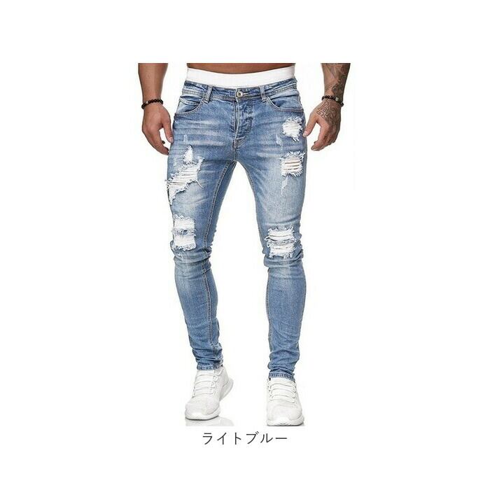 スキニージーンズ ダメージ メンズ 通販 ダメージジーンズ スキニー スキニーパンツ スキニーデニム パンツ ボトムス ズボン 長ズボン ダメージデニム ダメージ加工 ジーパン ダメージパンツ ストレッチ 細身 かっこいい おしゃれ カジュアル クラッシュ 無地