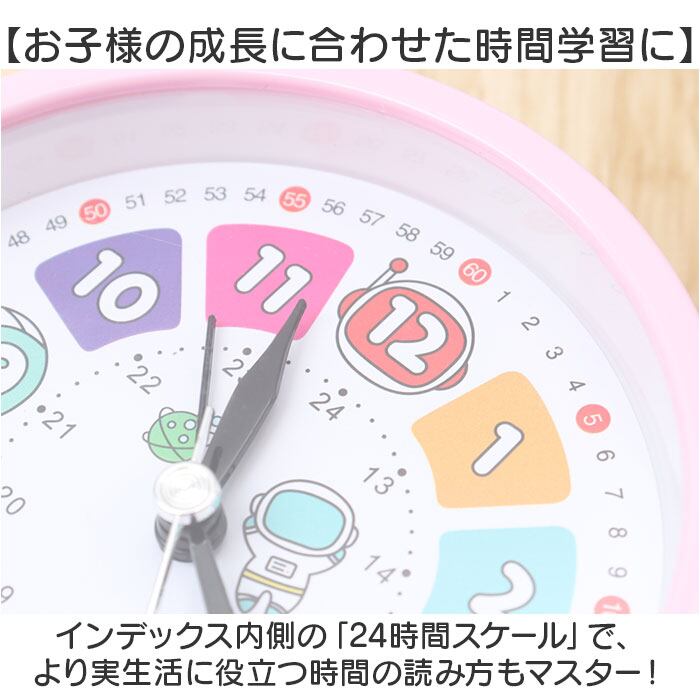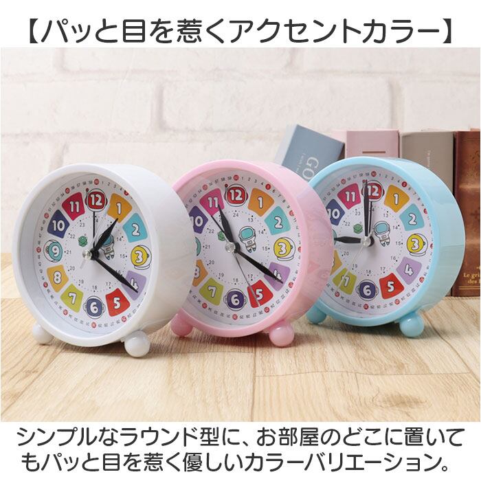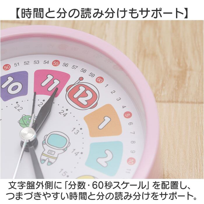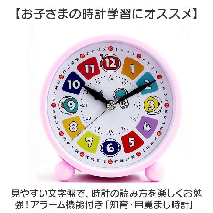 ・見やすい文字盤で、時計の読み方を楽しくお勉強!アラーム機能付き「知育・目覚まし時計」