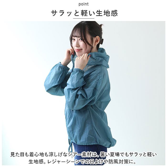 ・シアー素材で涼しげに。サッと着られる薄手のフード付きサマーパーカーが新登場。