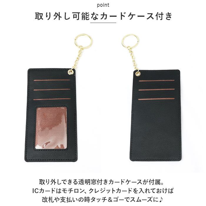 ・取り外しできる透明窓付きカードケースが付属。ICカードはモチロン、クレジットカードを入れておけば改札や支払いの時タッチ&ゴーでスムーズに♪