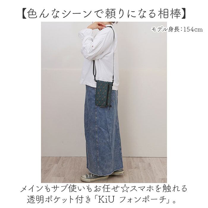 ・メインもサブ使いもお任せ☆スマホを触れる透明ポケット付き「KiU フォンポーチ」。