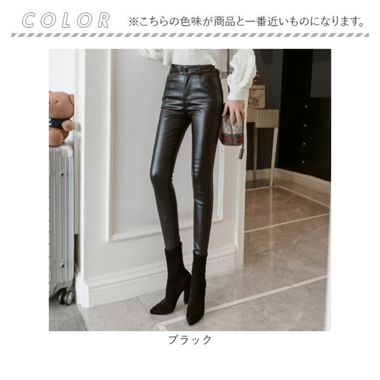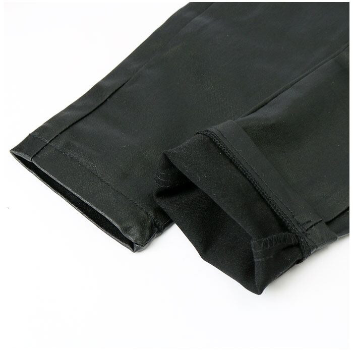 ・フェイクレザーを使用したクールな印象のパンツ。トレンド感のある辛口コーデが仕上がる、シンプルアイテム。