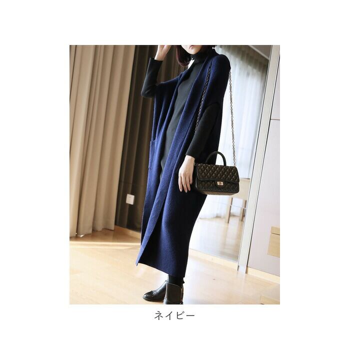 ロングジレ レディース 通販 ベスト ジレ 厚手 ロング ニット ノースリーブ ロングベスト ニットベスト ニットジレ ニットカーディガン ニットカーデ ニットコート きれいめ 暖かい マキシ丈