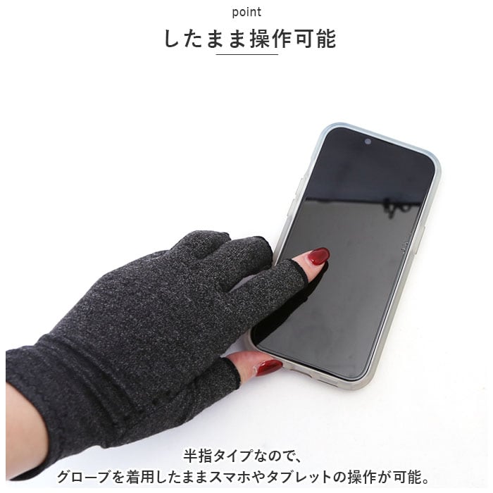 ・半指タイプなので、グローブを着用したままスマホやタブレットの操作が可能。