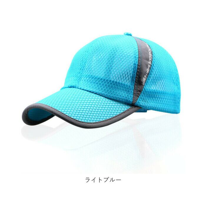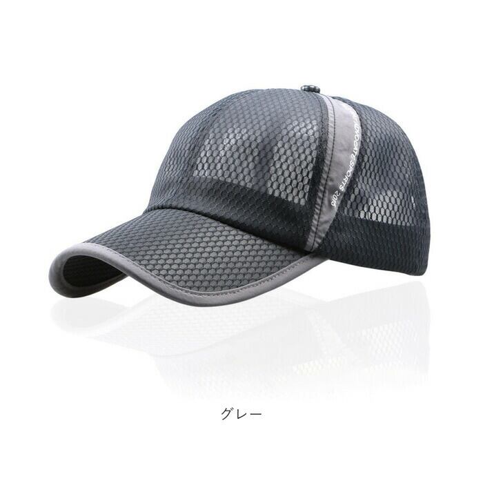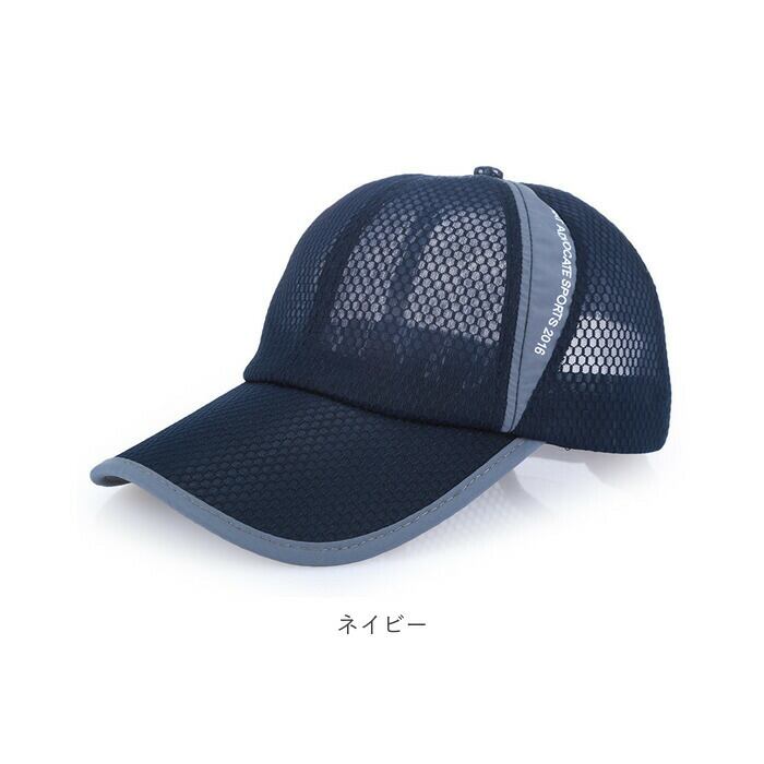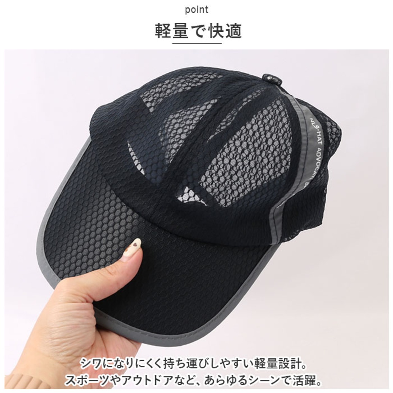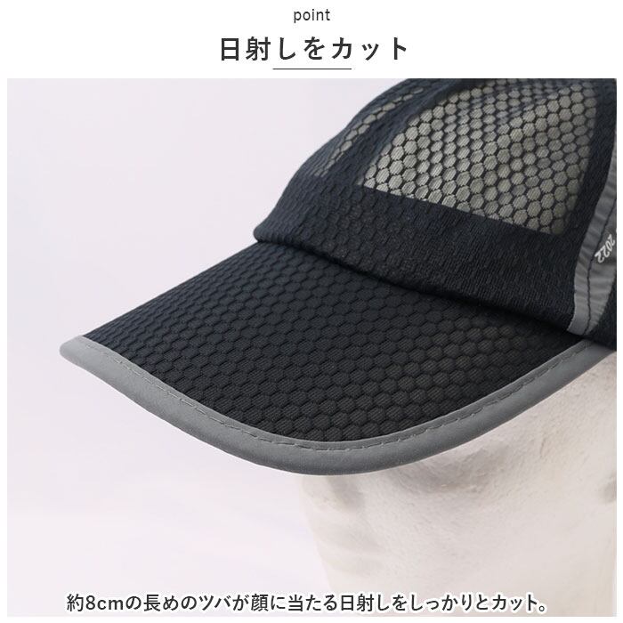 ・通気性抜群のランニングキャップ。メッシュ素材なので、熱がこもらず快適さをキープ。