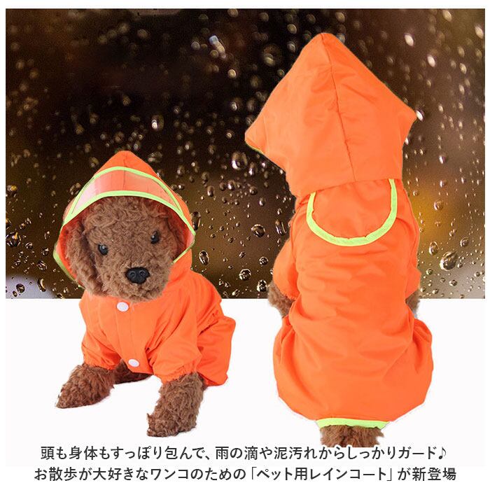 ・頭も身体もすっぽり包んで、雨の滴や泥汚れからしっかりガード♪お散歩が大好きなワンコのための「ペット用レインコート」が新登場。