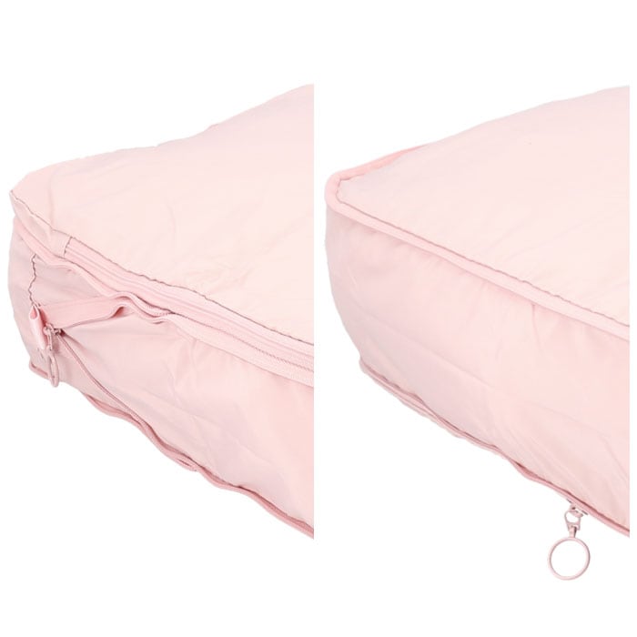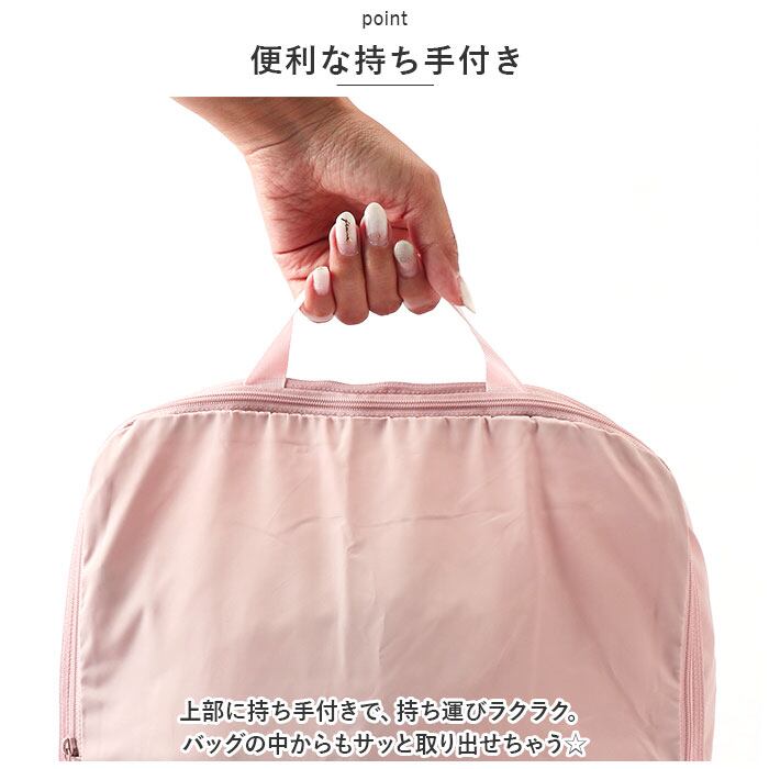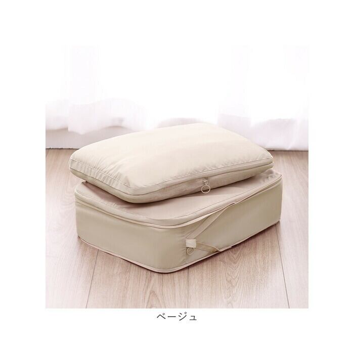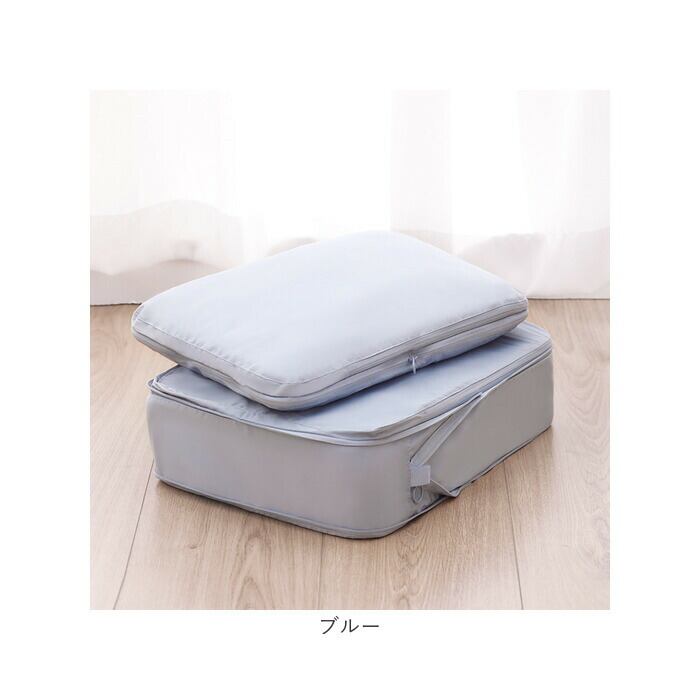 ・衣類をたたんでポーチに入れ、開口部と側部のファスナーを閉めるだけのシンプル設計。面倒な圧縮作業の手間を軽減◎