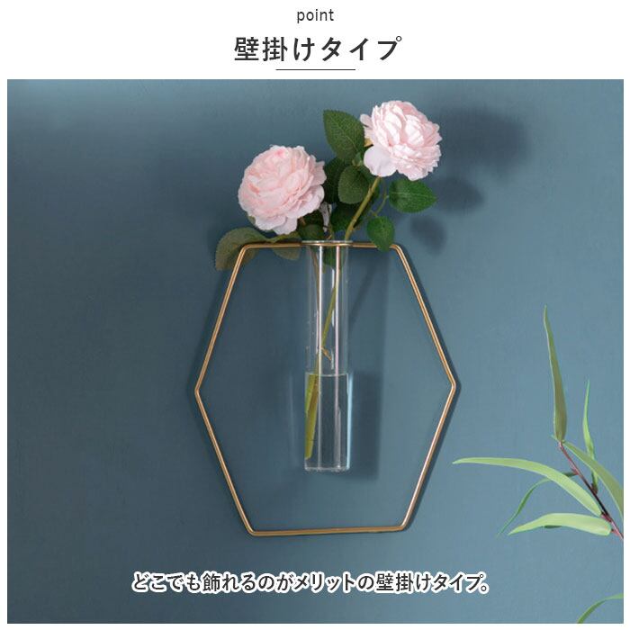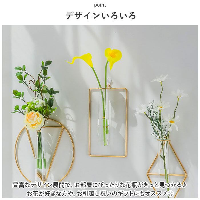 花瓶 一輪挿し 壁掛け 通販 フラワーベース かびん 花器 ガラス 試験管 おしゃれ かわいい ワイヤーフレーム 壁かけ ナチュラル シンプル ゴールド リビング ダイニング 寝室 玄関 エントランス インテリア小物 置物 インテリア