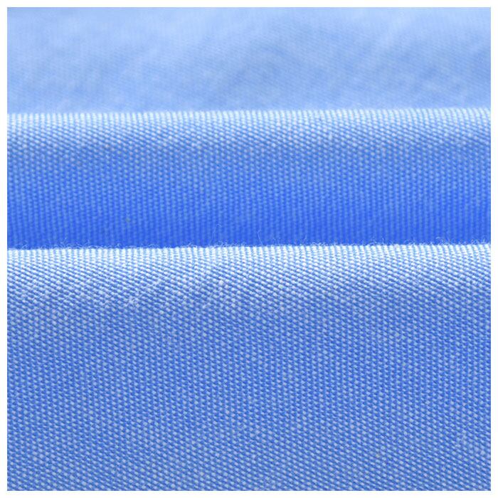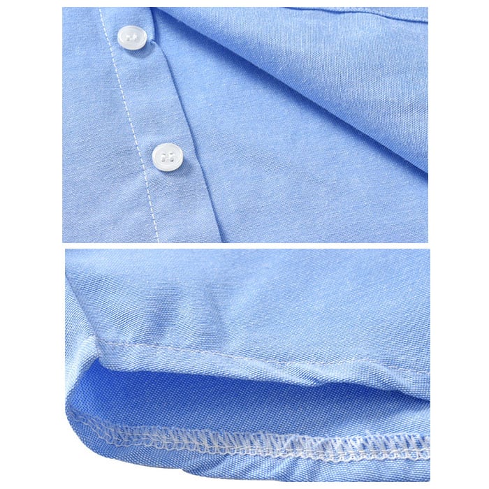 ・スカイブルーが爽やかな長袖シャツは、吸湿性・通気性に優れ、肌当たりの柔らかい綿混素材。前合わせはもちろん、袖口までボタンのついたきちんと仕様。