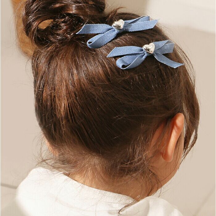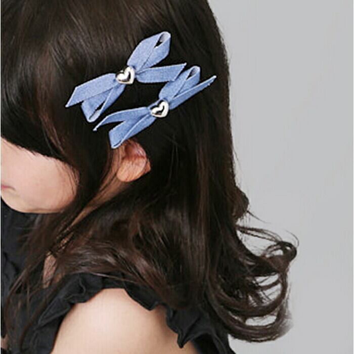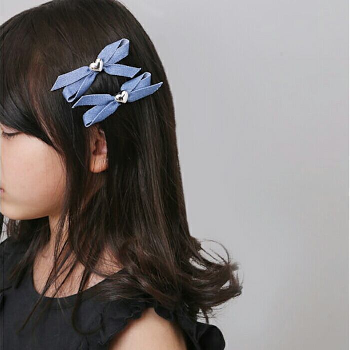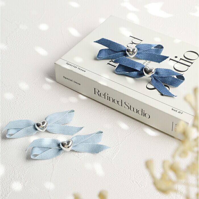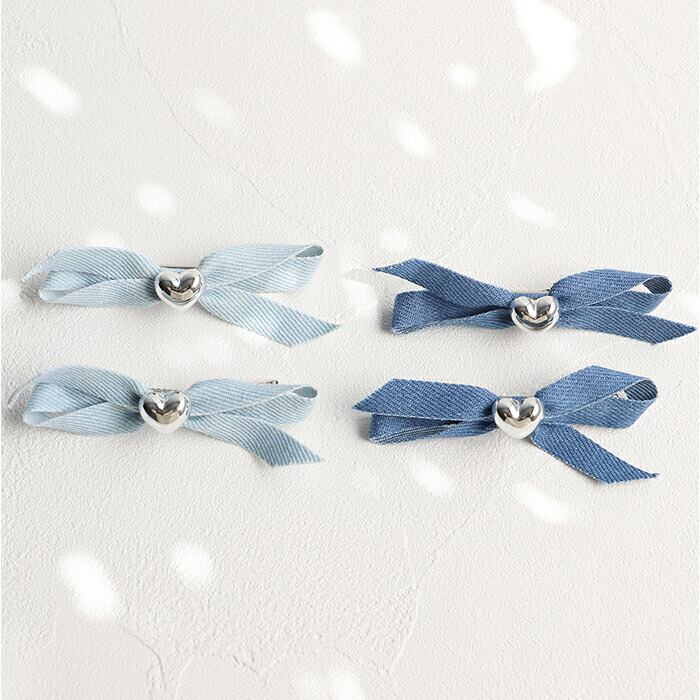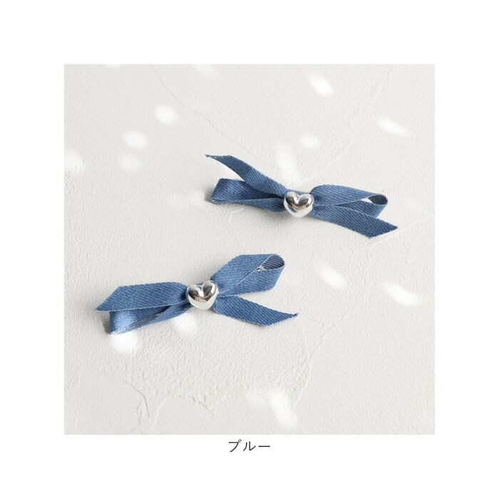 ・デニムのようなカラー布に、シルバーのハートモチーフをON♪存在感が生まれる2個セット。