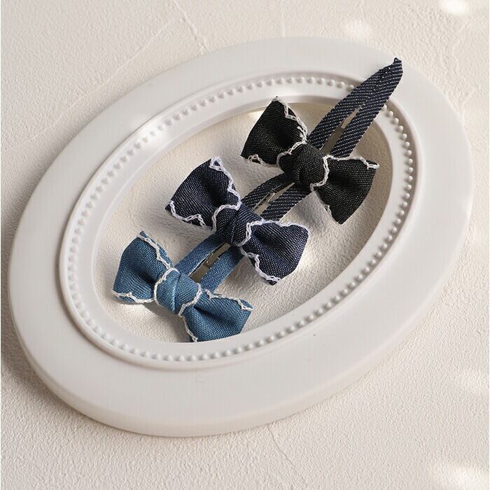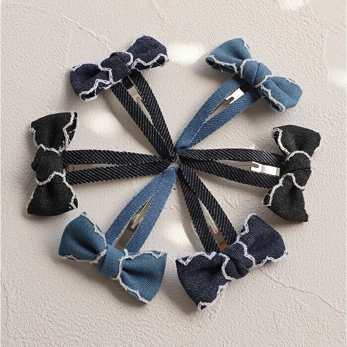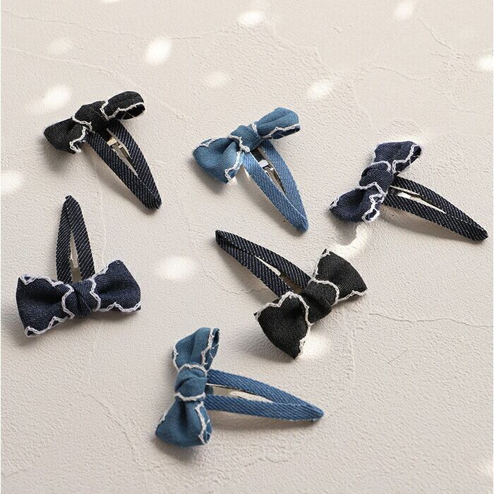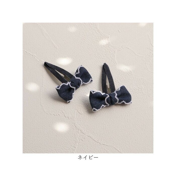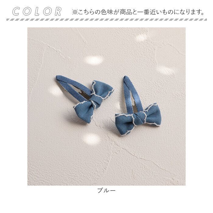 ・デニム調の生地を使ったカジュアルライクなリボン型。位置を変えて付けられる2個セット♪