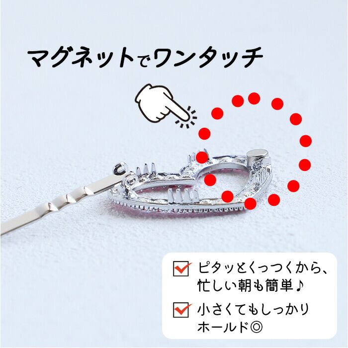 ・少量の髪を挟んで、マグネットでワンタッチ!ピタッとくっつくから、忙しい朝も簡単。