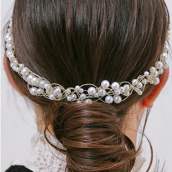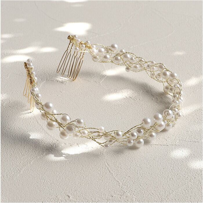 ・ゴールドのワイヤーと、たくさんのイミテーションパール☆落ち着きのある上品な印象を演出。