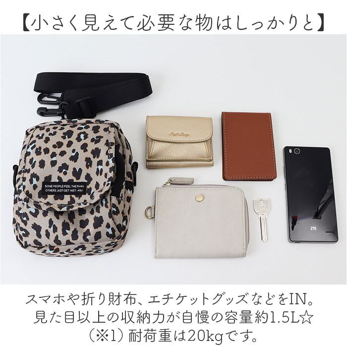 ・スマホや折り財布、エチケットグッズなどをIN。見た目以上の収納力が自慢の容量約1.5L☆