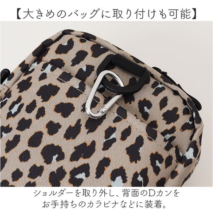 ・ショルダーを取り外し、背面のDカンをお手持ちのカラビナなどに装着。