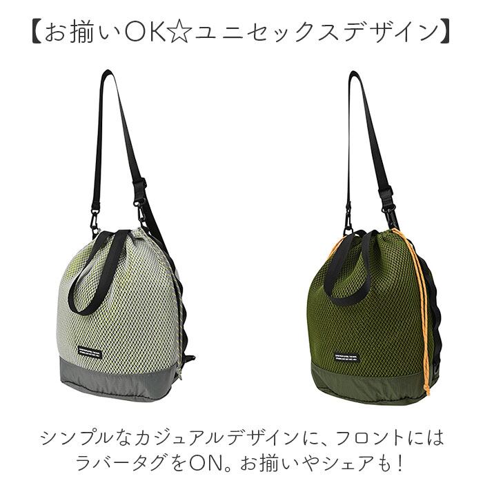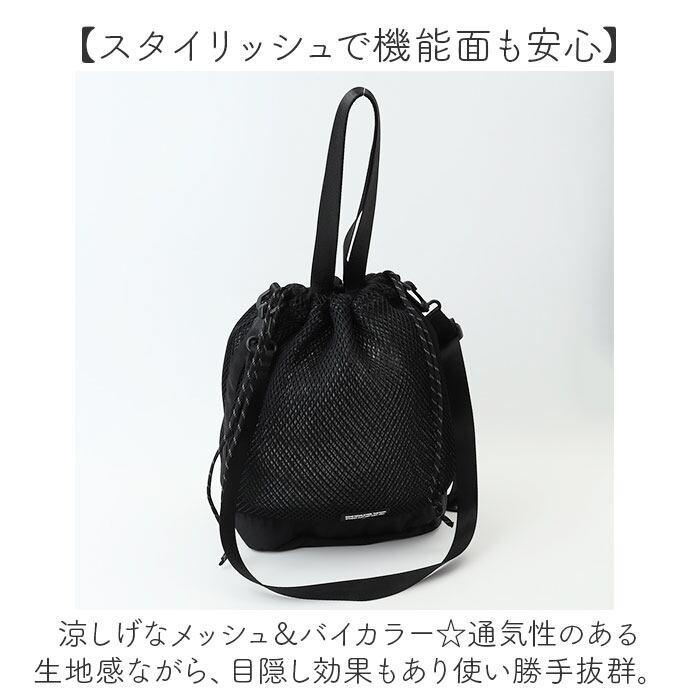 ・爽やかな印象で、暑い季節のコーデにもマッチ!「KiU ダブルメッシュドローストリングショルダー」。