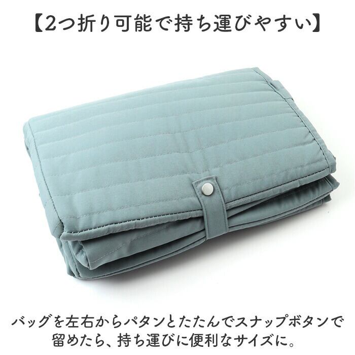 ・バッグを左右からパタンとたたんでスナップボタンで留めたら、持ち運びに便利なサイズに。