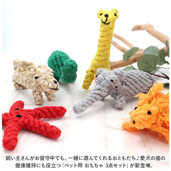 ・飼い主さんがお留守中でも、一緒に遊んでくれるおともだち♪愛犬の歯の健康維持にも役立つ「ペット用 おもちゃ 3点セット」が新登場。