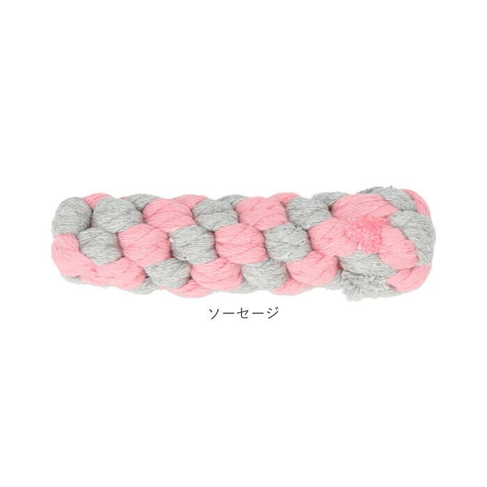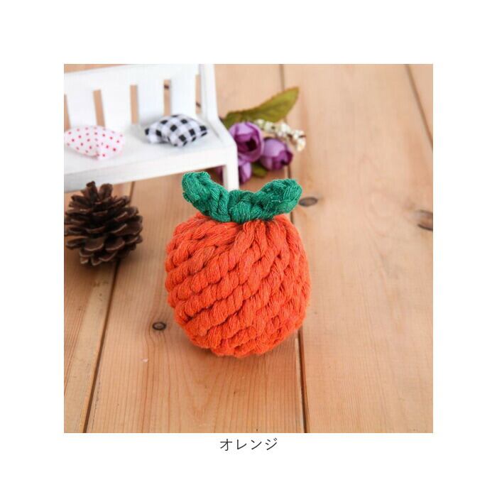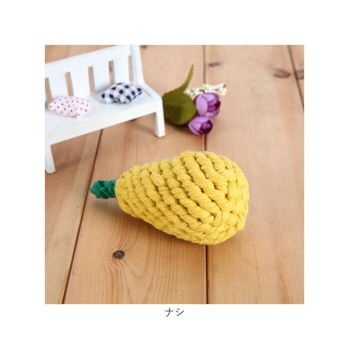 ・カラフルなコットンのロープを、ベジタブルやフルーツ、ワンちゃんのお気に入りのフードの形に編み込んで仕上げたドッグ用ロープトイ。素朴な雰囲気と優しい噛み応えにワンちゃん夢中。