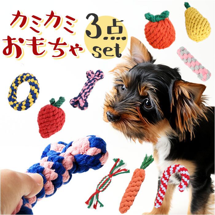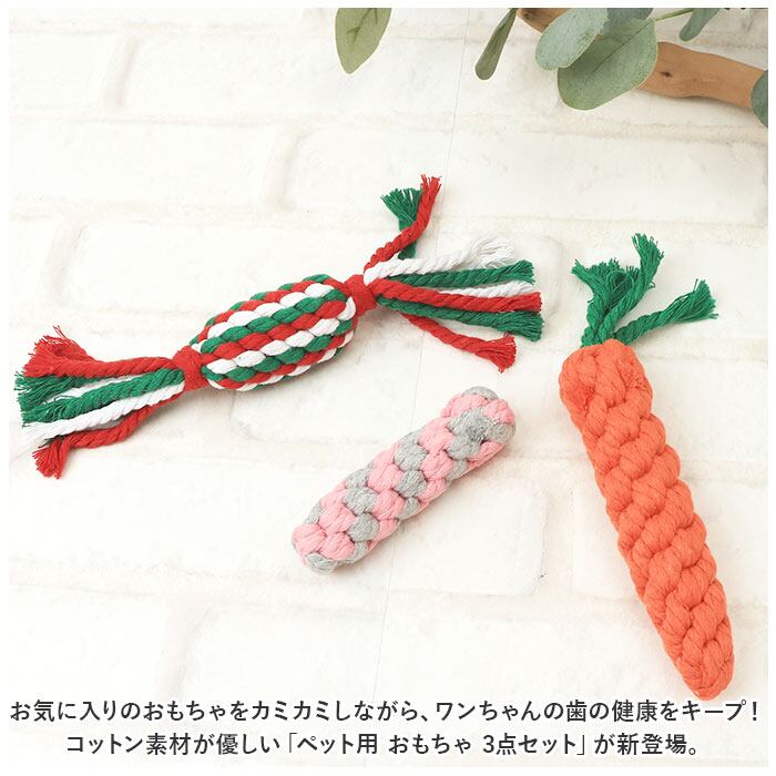 ・お気に入りのおもちゃをカミカミしながら、ワンちゃんの歯の健康をキープ!コットン素材が優しい「ペット用 おもちゃ 3点セット」が新登場。