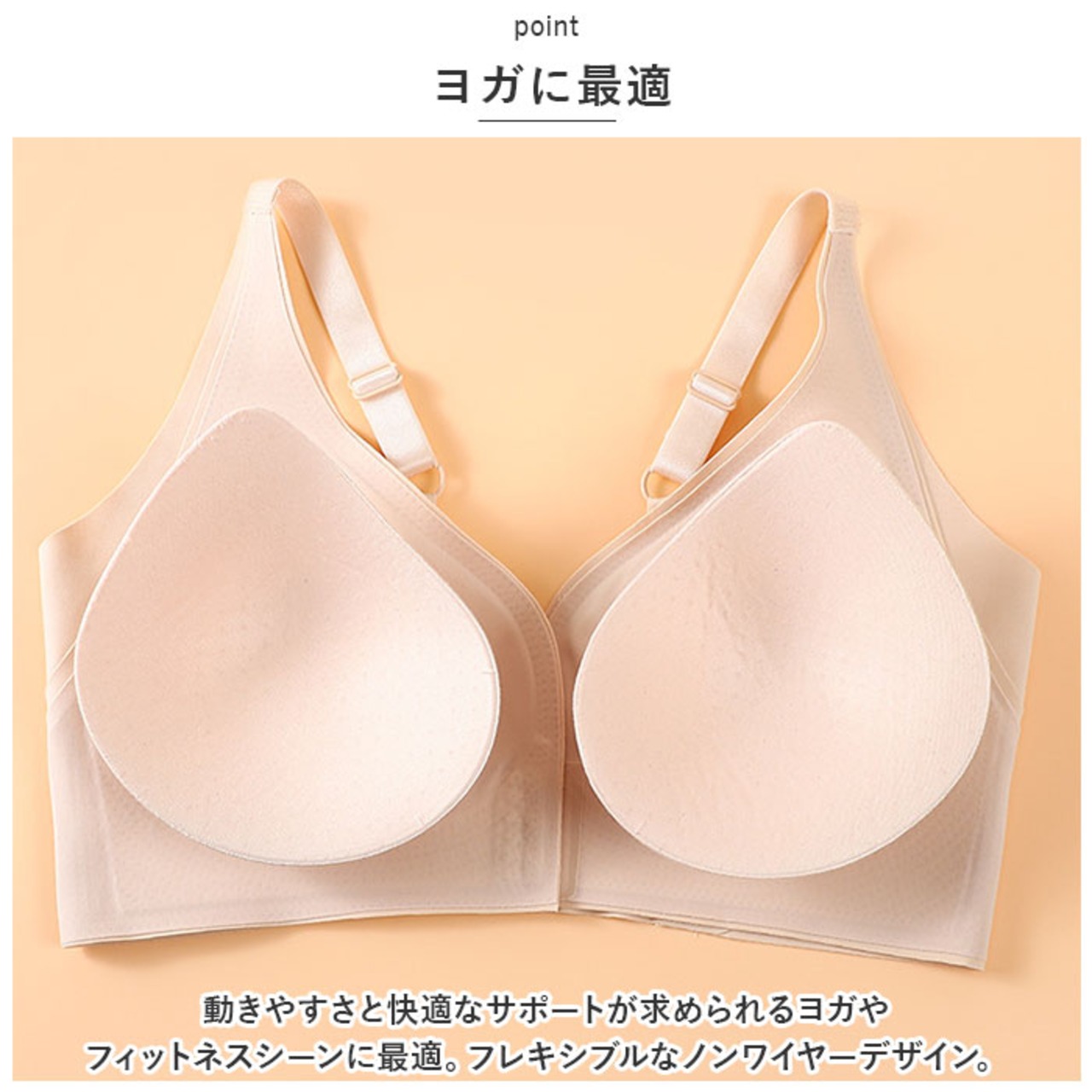 ・動きやすさと快適なサポートが求められるヨガやフィットネスシーンに最適。フレキシブルなノンワイヤーデザイン。