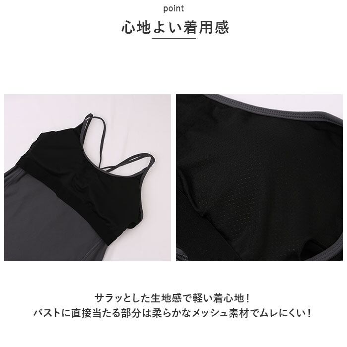 ・サラッとした生地感で軽い着心地!バストに直接当たる部分は柔らかなメッシュ素材でムレにくい!