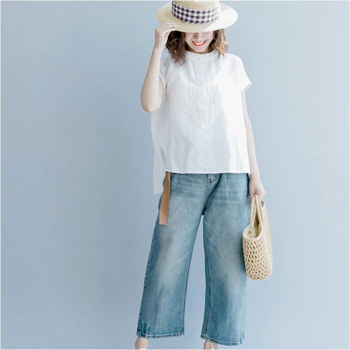 シャツ 半袖 レディース 通販 tシャツ Tシャツ 半袖シャツ 半袖Tシャツ 半袖tシャツ ブラウス シャツブラウス スタンドカラー 薄手 薄い やわらかい 柔らかい 着心地が良い 体型カバー ゆったり カジュアル シンプル 無地