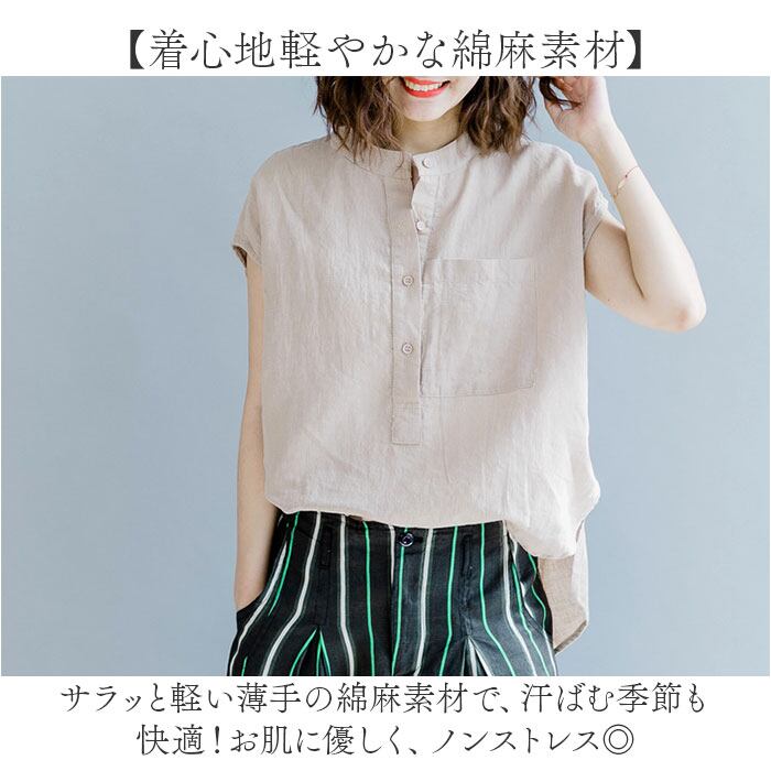 ・サラッと軽い薄手の綿麻素材で、汗ばむ季節も快適!お肌に優しく、ノンストレス◎