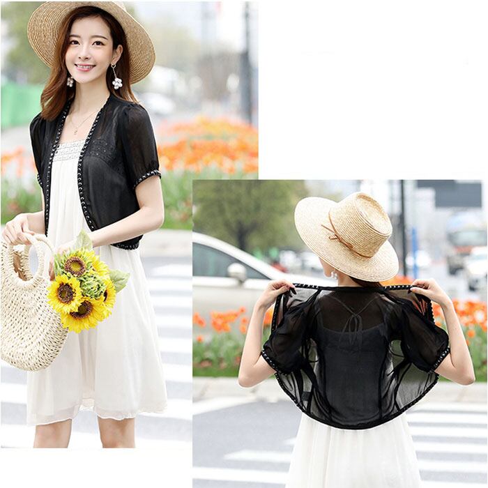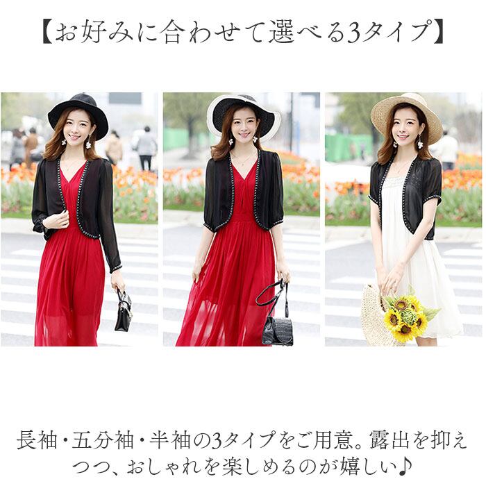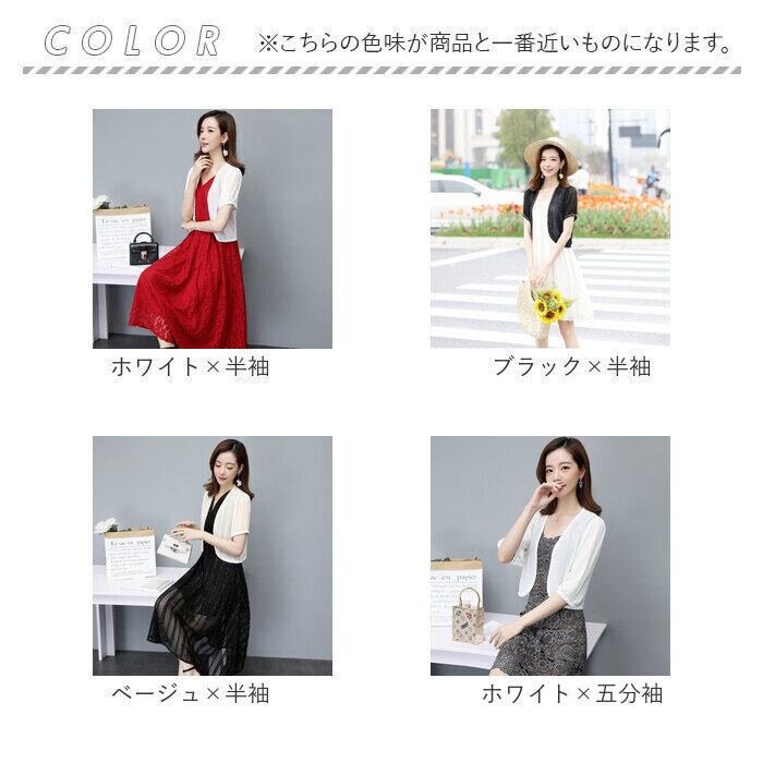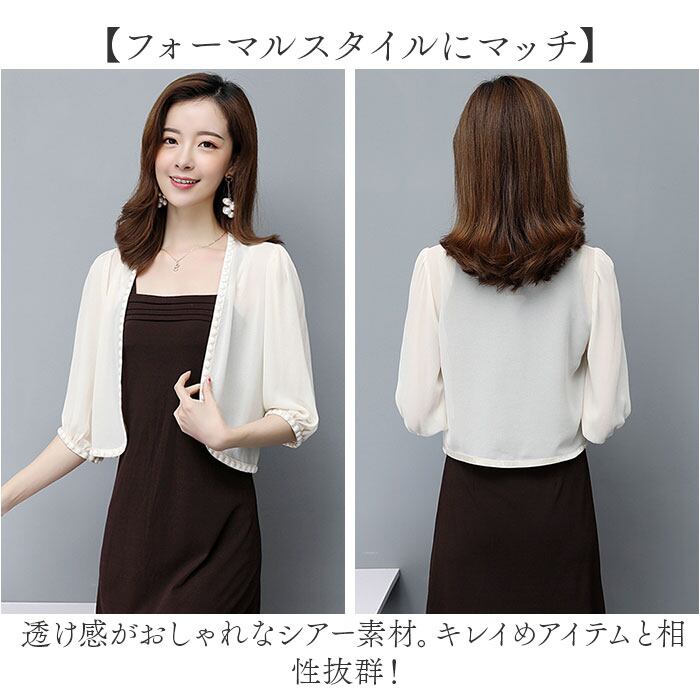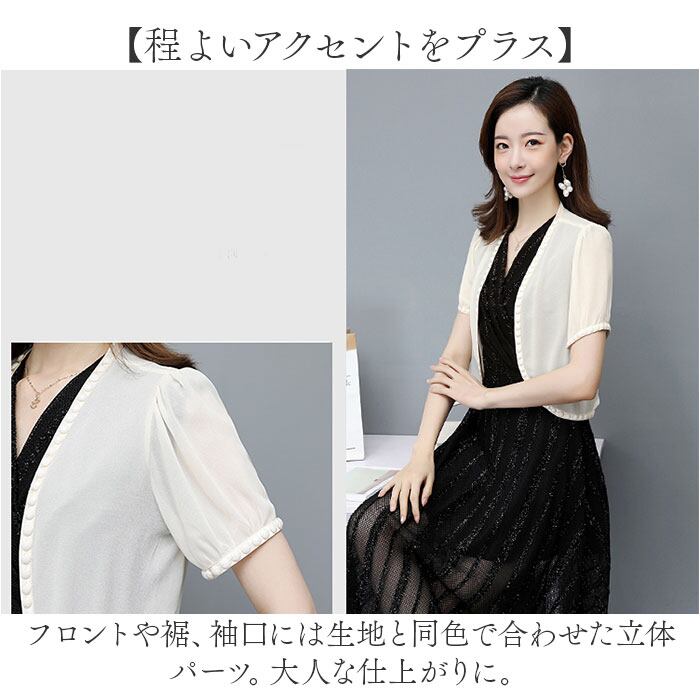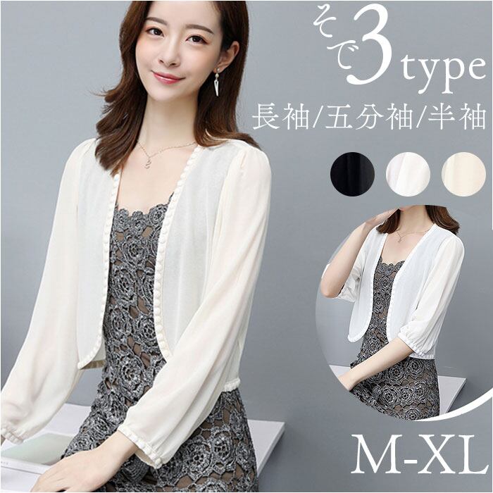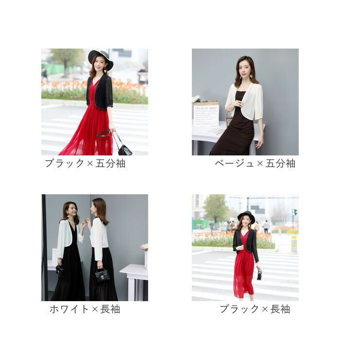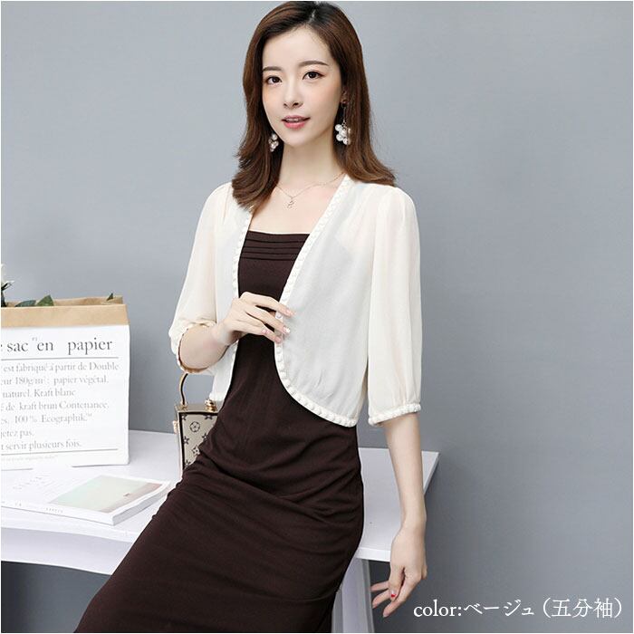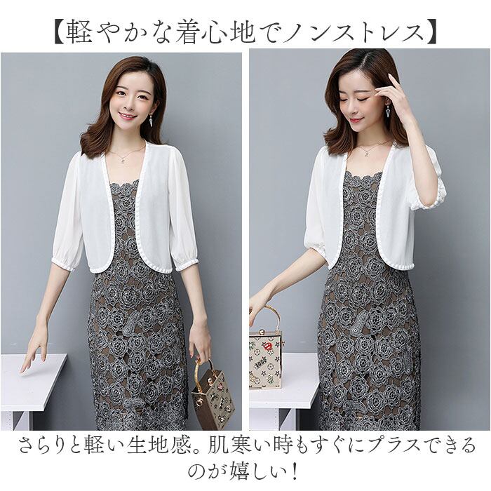 ・ボタンなどがなく、ワンピースやドレスの上に羽織るだけでOK。