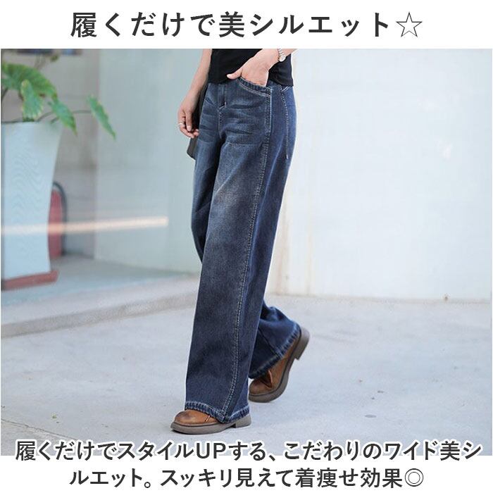 ・履くだけでスタイルUPする、こだわりのワイド美シルエット。スッキリ見えて着痩せ効果◎