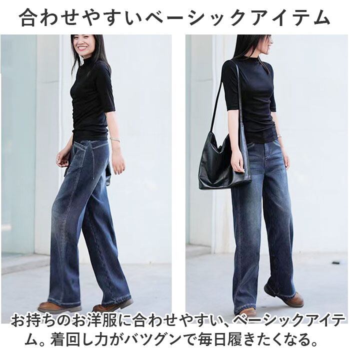 デニムパンツ レディース 通販 デニム ワイド ジーンズ ジーパン ボトムス ズボン パンツ カジュアル ハイウェスト ゆったり 長ズボン シンプル おしゃれ かわいい オールシーズン 上品 きれいめ 大人 バギー ワイドパンツ 体型カバー 動きやすい