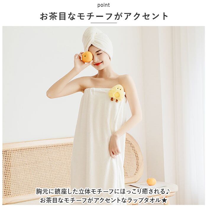 ・胸元に鎮座した立体モチーフにほっこり癒される♪お茶目なモチーフがアクセントなラップタオル★