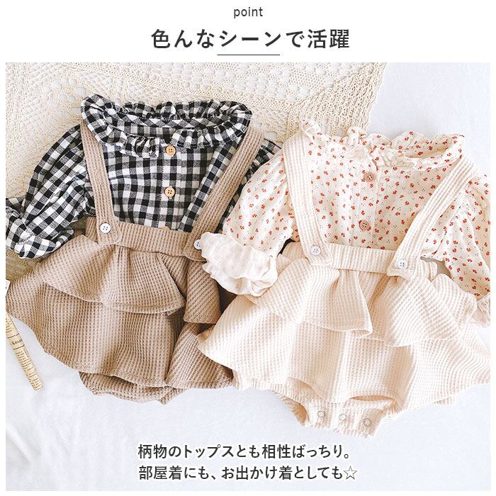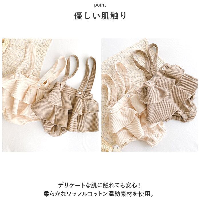 ・ちょこっとフリルで、ベビーの可愛さを更に引き立ててくれる♪ふんわり優しげなニュアンスカラーで、ガーリー感控えめな仕上がり。