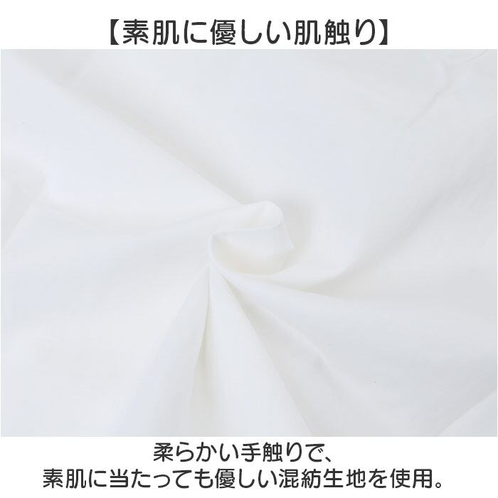・柔らかい手触りで、素肌に当たっても優しい混紡生地を使用。