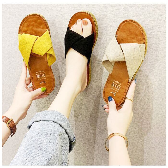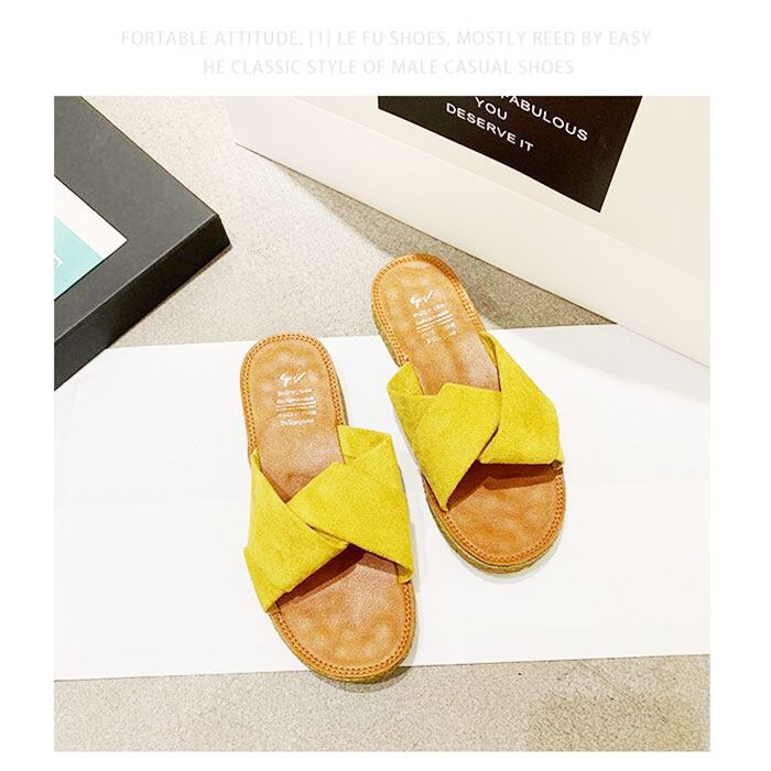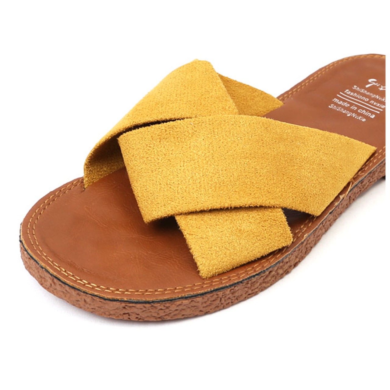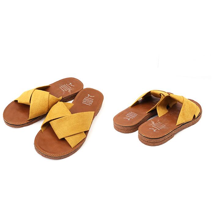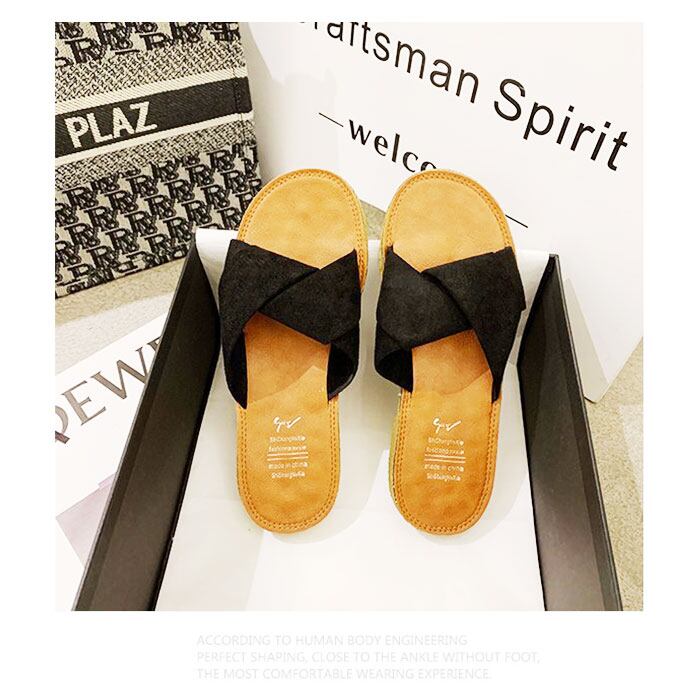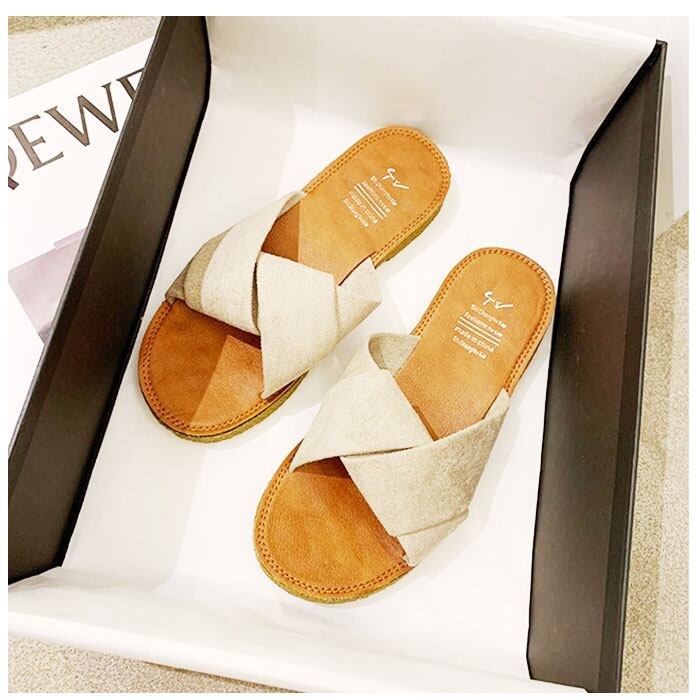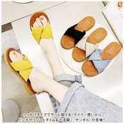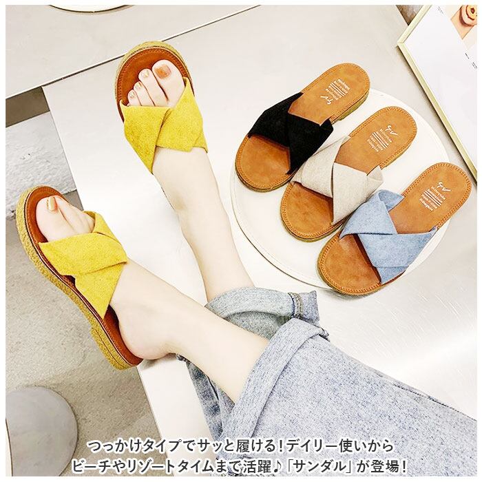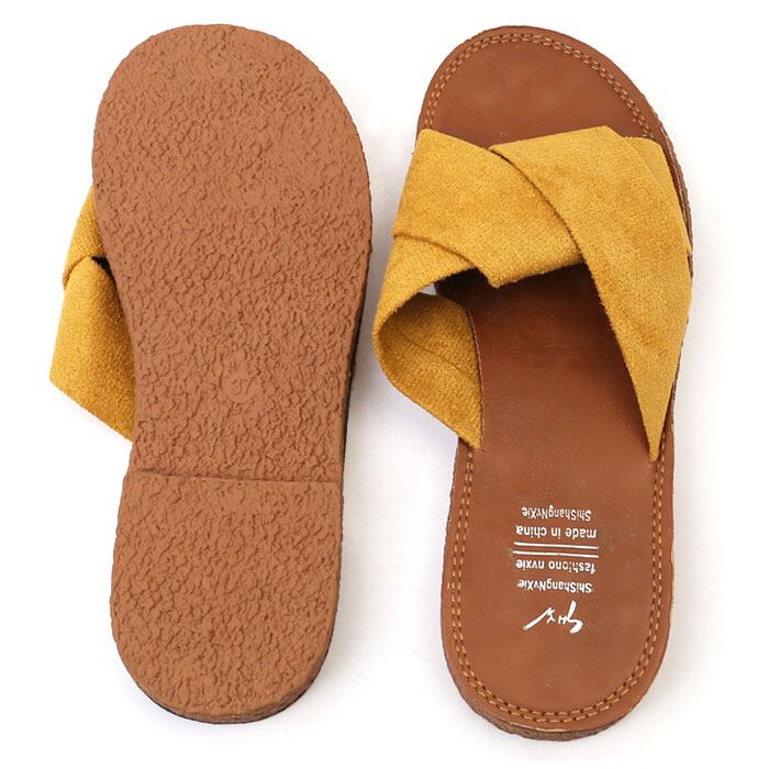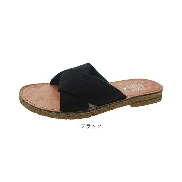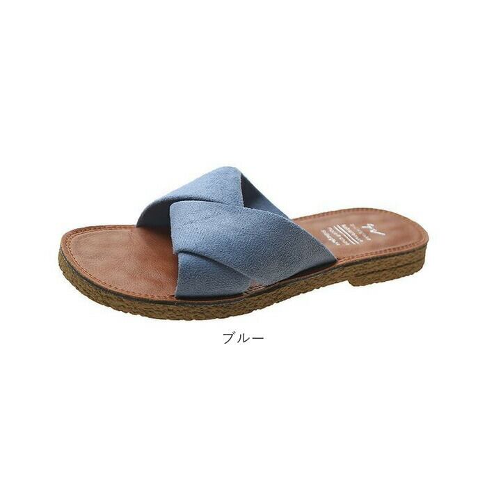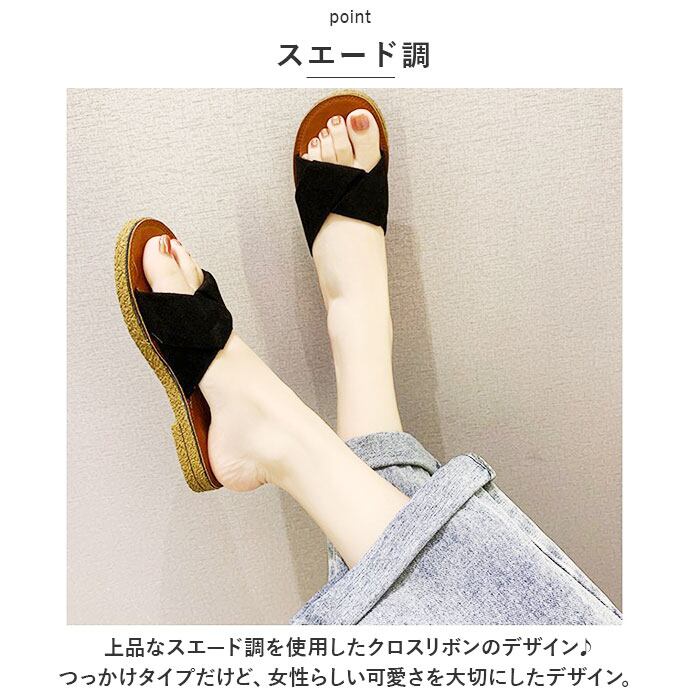 ・上品なスエード調を使用したクロスリボンのデザイン♪つっかけタイプだけど、女性らしい可愛さを大切にしたデザイン。