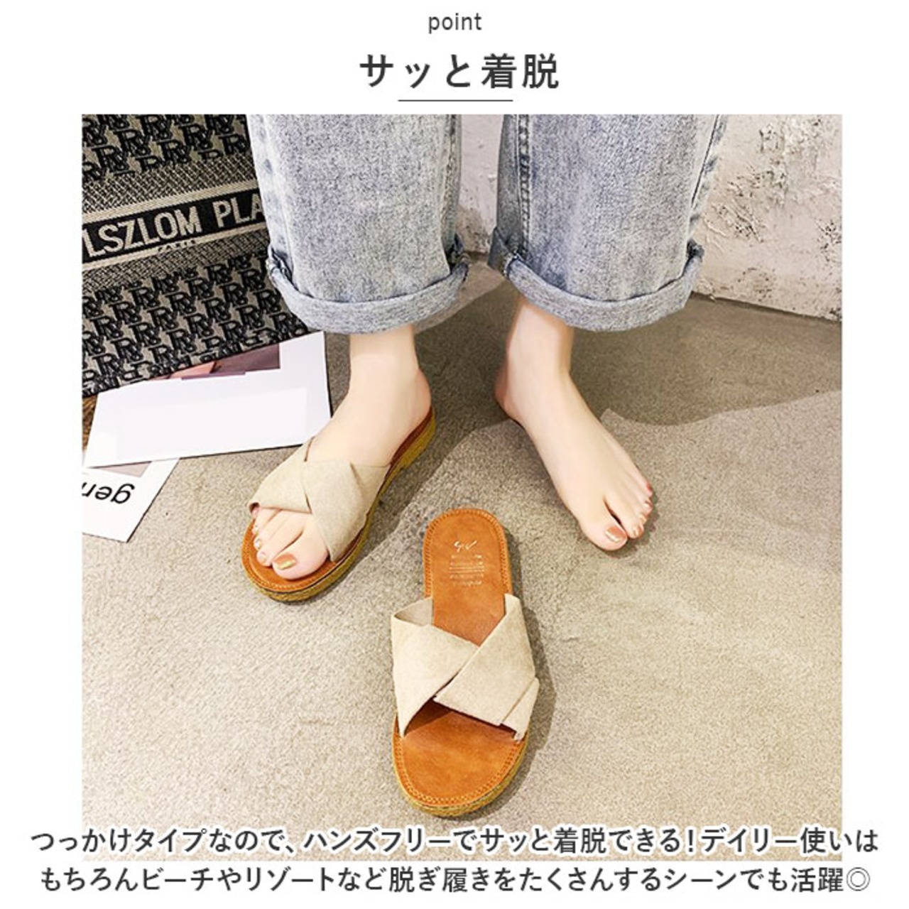 ・つっかけタイプなので、ハンズフリーでサッと着脱できる!デイリー使いはもちろん、ビーチやリゾートなど脱ぎ履きをたくさんするシーンでも活躍◎