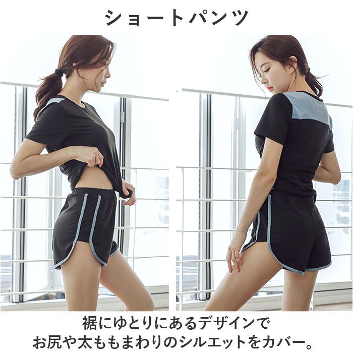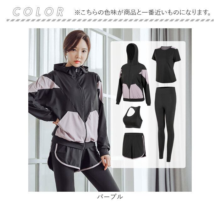 ・長袖ジップパーカー、半袖トップス、スポーツブラ、ショートパンツ、ショートパンツ、レギンスの5点セット♪