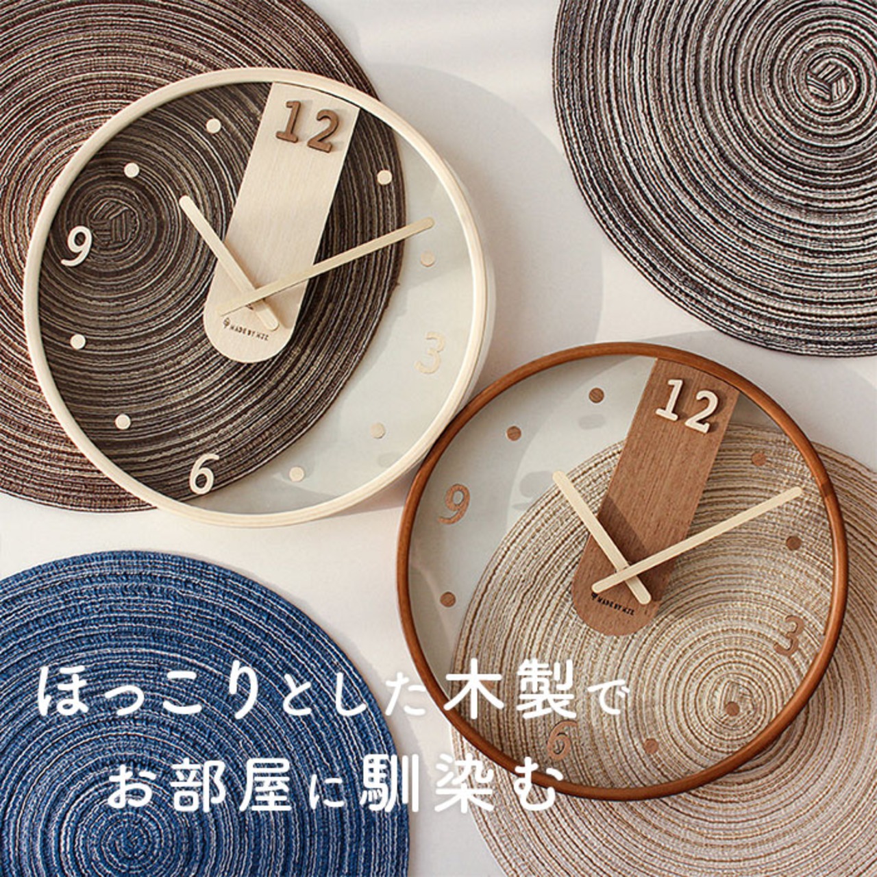 ・ウッド調×クリアガラスのこだわりデザインでお部屋をワンランクUP♪「壁掛け時計」が登場!